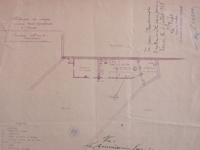 Plan au sol de la fabrique de cierges, 1928. AD Morbihan 5M229.Immatriculation