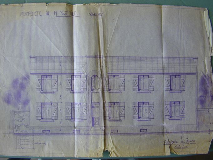 Elévation de la maison Grenier par Ignace Ronco (s.d.). AM,Vannes 5 I 162.Immatriculation