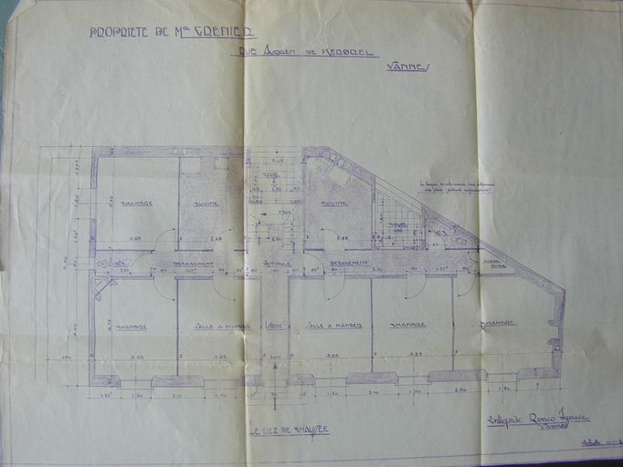Plan du RDC de la maison Grenier par I. Ronco (s.d.). AM Vannes 5 I 162.Immatriculation