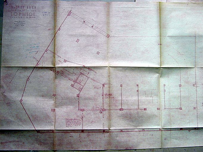 Plan du sous-sol de l'hôtel par Guillou, 1950. AM Vannes 1G59.Immatriculation