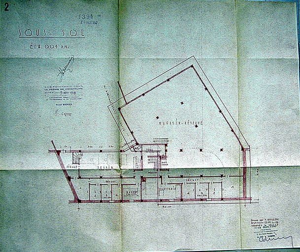 Plan du sous-sol par Guillou, 1947. AM Vannes 1G59.Immatriculation