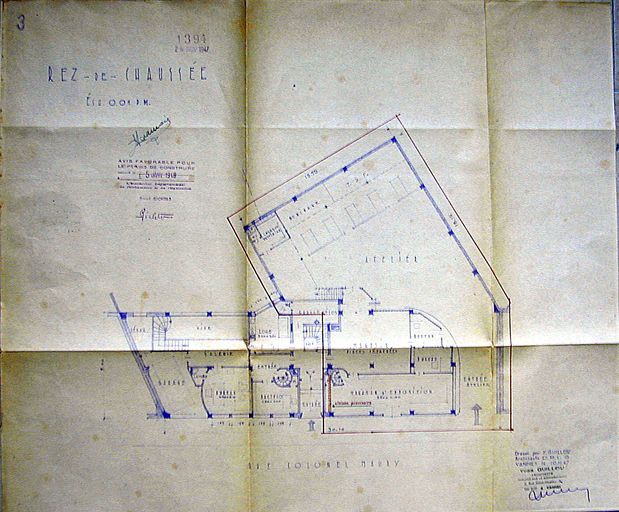 Plan du rez-de-chaussée par Guillou, 1947. AM Vannes 1G59.Immatriculation