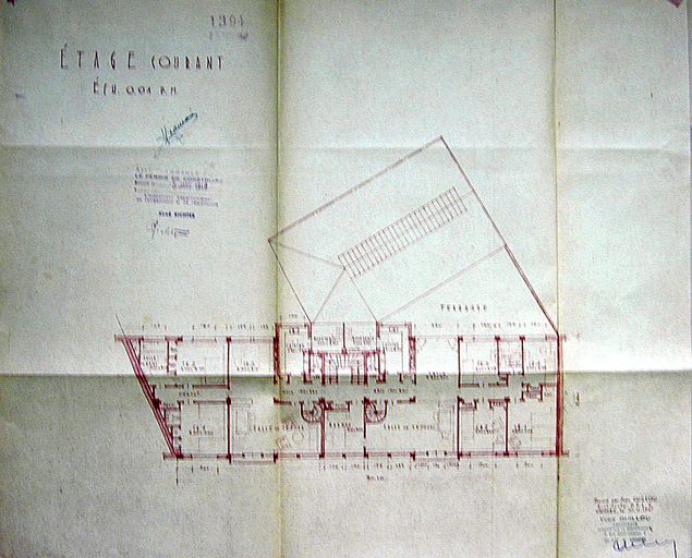 Plan de l'étage courant par Guillou, 1947. AM Vannes 1G59 et AD Morbihan 110J4487.Immatriculation