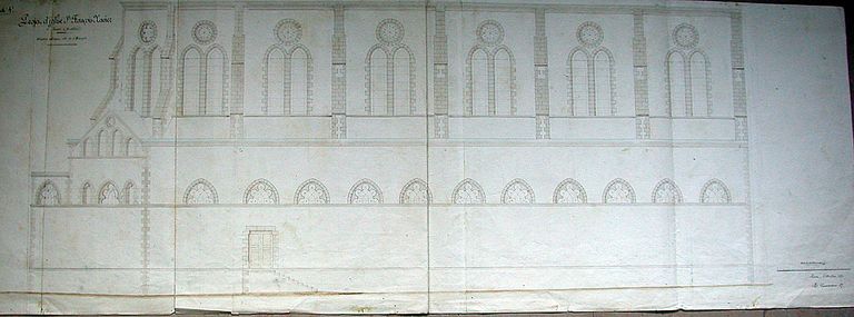 Projet d'église : élévation latérale par le révérend père Tournesac(n.d.). Fonds Saint-François-Xavier. AM Vannes.Immatriculation