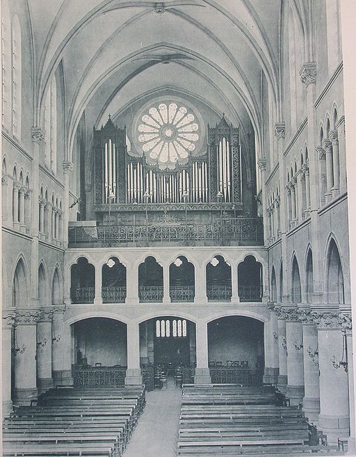 Vue intérieure de la grande chapelle (portail) vers 1900, extrait de : album des 50 ans. Fonds Saint-François-Xavier. AM Vannes.Immatriculation