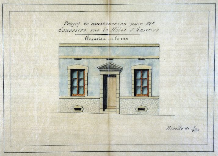 Projet de construction pour monsieur Souvestre rue Léhélec à Vannes, élévation sur rue, sans date (détruit aujourd'hui à la place immeuble n°7). AM Vannes 5I162.Immatriculation