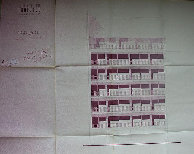 Elévation sur rue (rectif) par Guillou, 27 juin 1960. AM Vannes 1G59.Immatriculation