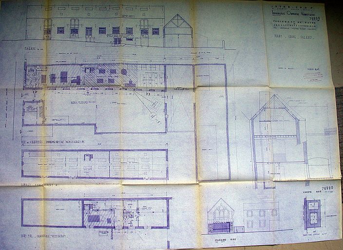 Plans, coupe, façades des bâtiments : percement de baies et aménagement intérieur, 1967. AM Vannes 1G59.Immatriculation