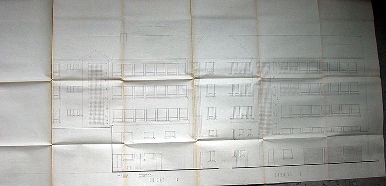 Elévation sur cour par Guillou, 1959. AM Vannes 1G59.Immatriculation