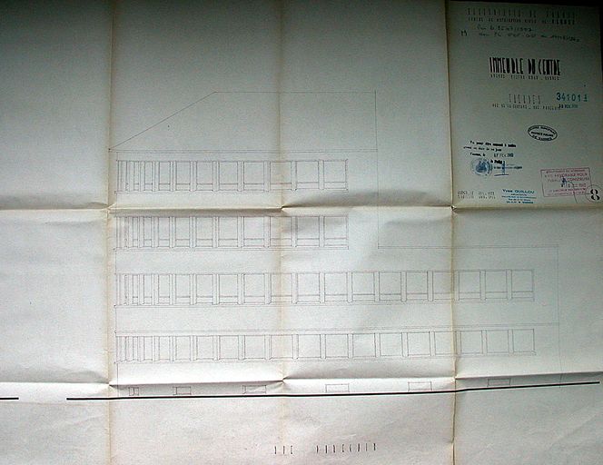 Elévation de la façade rue Pobéguin par Guillou, 1959. AM Vannes 1G59.Immatriculation