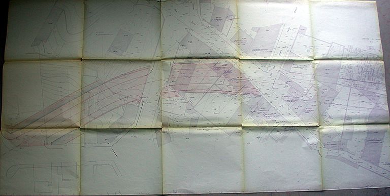 Plan parcellaire et de nivellement du tronçon II (1er tracé) sans date, 195?. AM Vannes 1 O 216 déviation RN 165.Immatriculation