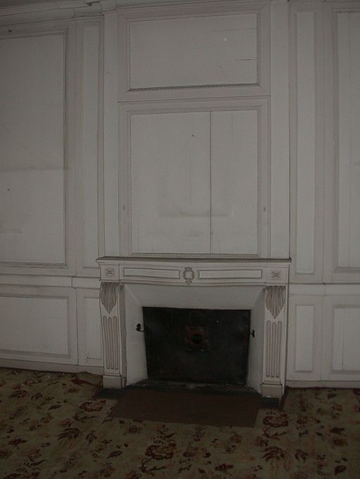Etage, pièce nord, (salle à manger), cheminée et lambris 19e siècle.Immatriculation