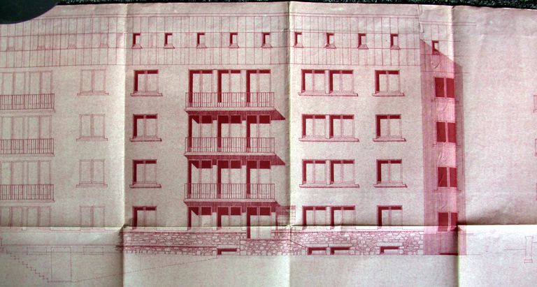 Réalisation de 128 logements HLM. Projet de Yves Guillou, 1954. Elévations. AD Morbihan 110 J 4033.Immatriculation