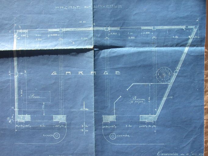 Plan du garage par E. Gemain, 192?. AD Morbihan 5 M 230.Immatriculation