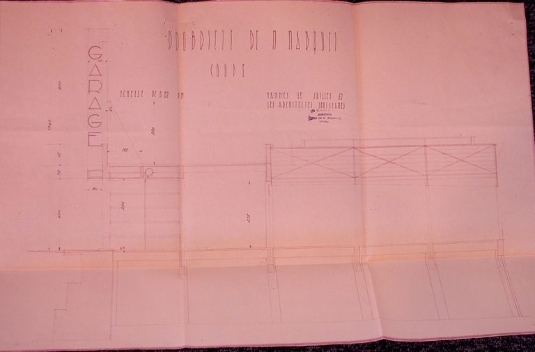 Coupe du garage Marquet par Bardet et Lamourec, juillet 1932. AD Morbihan 5 M 230 garages.Immatriculation