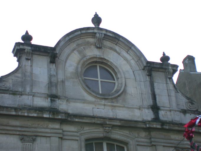 Détail du couronnement supérieur avec oculus.Immatriculation