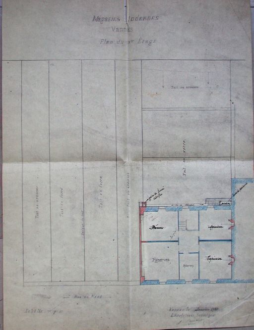 Projet d'agrandissement par Joseph Caubert de Cléry, janvier 1920 : plan du 3ème étage. AM Vannes 5 I 162.Immatriculation