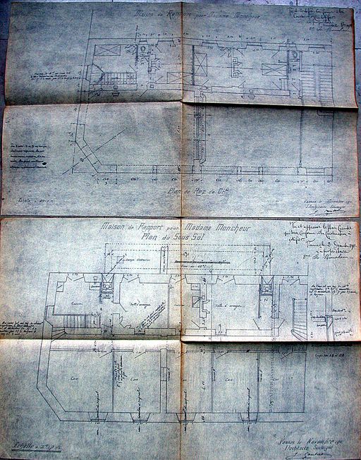 Plans du rez-de-chaussée et des caves par Caubert de Cléry, 1911. AM Vannes 5 I 162.Immatriculation