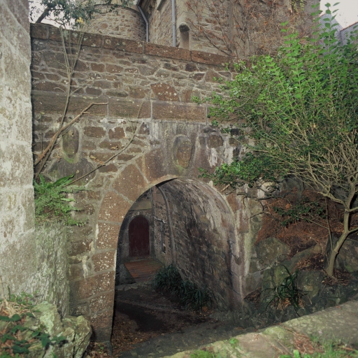 Vue du petit pont orné de sculptures situé entre le petit et le grand Park ar Lann.Immatriculation