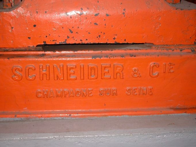 L'alternateur, détail - nom du constructeur : Schneider & Cie - Champagne-sur-Seine.Immatriculation