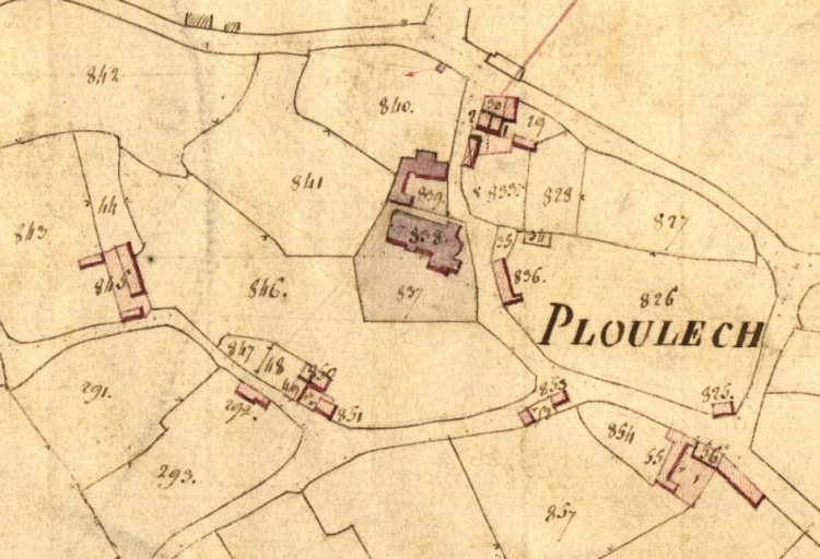 Extrait des plans cadastraux parcellaires de 1826 (AD 22).Immatriculation