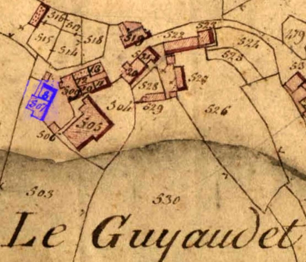 Extrait des plans cadastraux parcellaires de 1826 (AD 22).Immatriculation