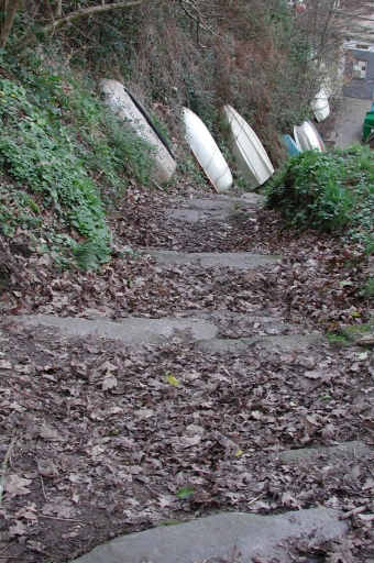 Les premières marches rustiques en haut de l'escalier du YaudetImmatriculation