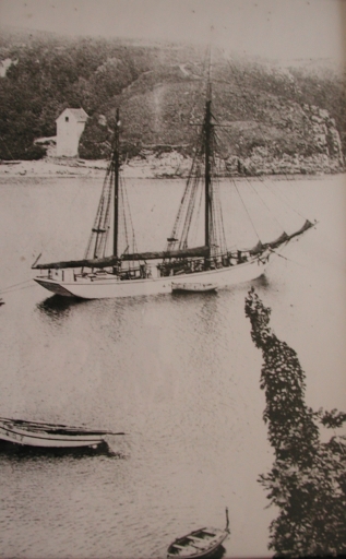 Goélette mouillée avant arrière au port du Yaudet, devant Beg HentImmatriculation