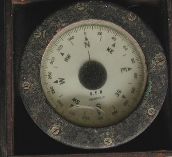Vue de détail du compas de route du bateau pilote Marcel-MichelineImmatriculation