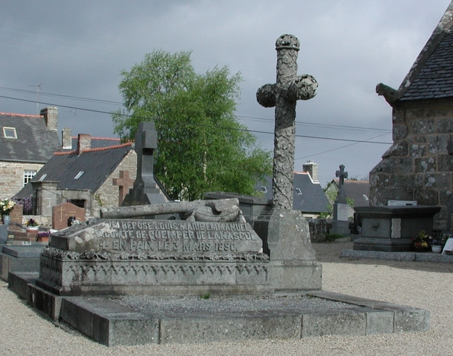 Sépulture du vicomte Louis-Marie-Emmanuel Quemper de Lanascol : Yves Hernot fils, sculpteur (état en 2004)Immatriculation
