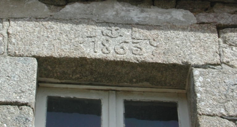 Sculpture d'inspiration maritime sur le linteau d'une maison d'habitation de PloumilliauImmatriculation