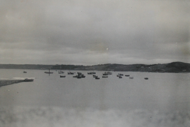 La flottille du port de Locquémeau vers 1954, avec au fond la pointe du DourvenImmatriculation