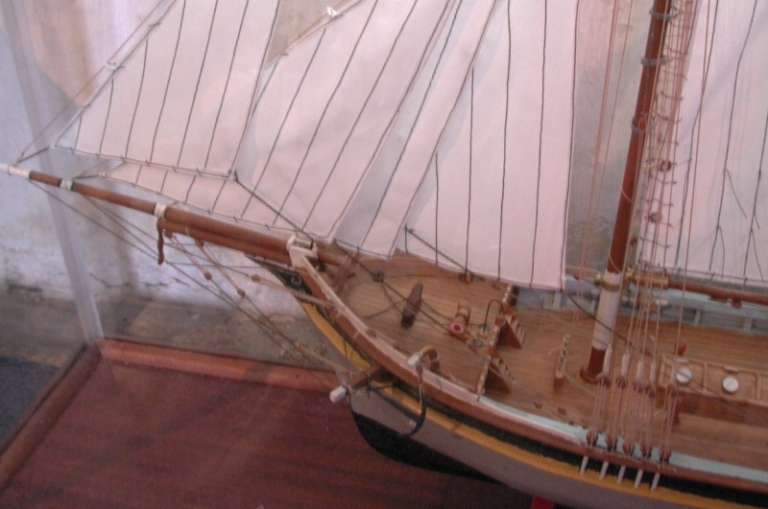Vue de détail du pont avant de la goélette à hunier Sainte-AnneImmatriculation