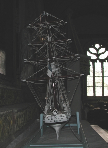 Vue de l'arrière de la maquette ex-voto de procession Zant-Quemeau dans l'église de LocquémeauImmatriculation