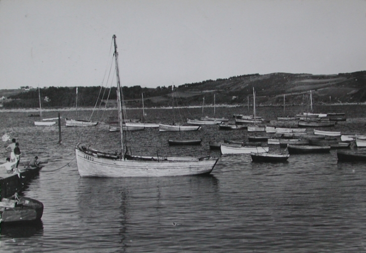 Ancien sardinier-caseyeur et fileyeur Jeannine LA853 de Perros-Guirec, regréé en sloup dans les années 1950, derrière : l'Hirondelle de Gouasdoué et le "Sacrwick" de Pierre Bonny (à gauche)Immatriculation