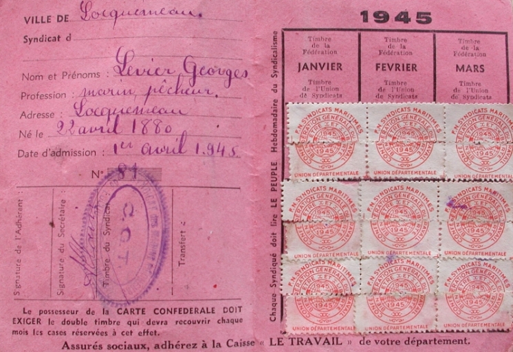 Carte confédérale de Georges-Auguste Levier, adhérent au syndicat maritime CGT en 1945 (verso)Immatriculation