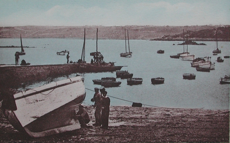 Dans les années 1930, le Notre-Dame-de-Pitié, flambart de 3, 87 tx, construit à Carantec en 1926 pour F. Quemper, est en carénage ou cafatage par un charpentier localImmatriculation