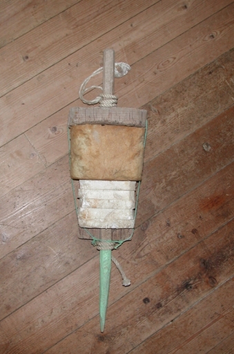 Ancienne bouée de casier en liège et bois (58 cm de long)Immatriculation