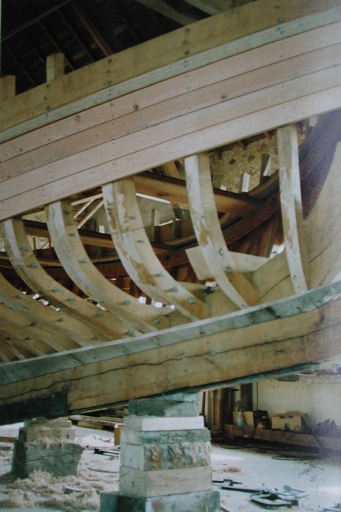 Coque du Barr Awel en construction : bordage de la coqueImmatriculation