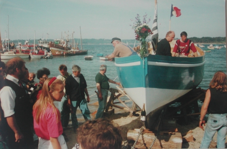 Baptême du Barr Awel à Locquémeau le 14 juin 1992 avec le recteur et Louis BonnyImmatriculation