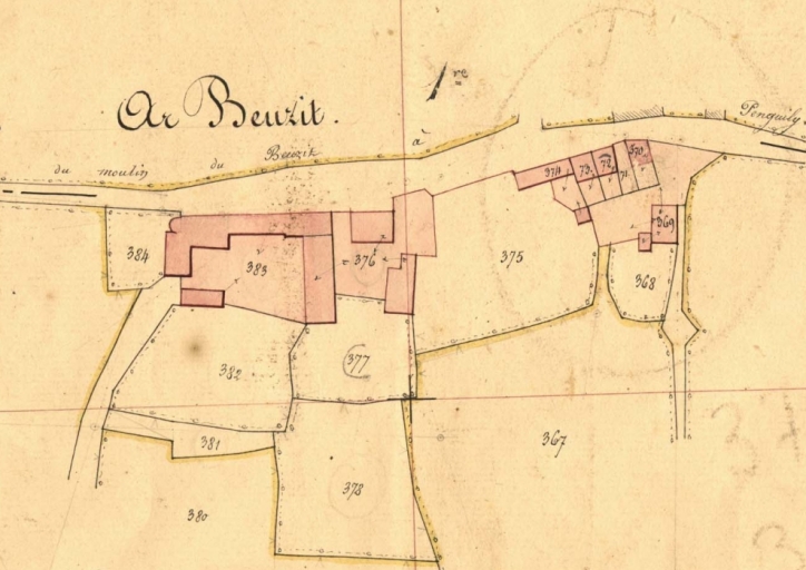 Extrait des plans cadastraux parcellaires de 1848 (AD 22).Immatriculation