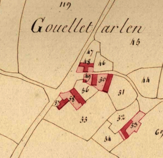 Extrait des plans cadastraux parcellaires de 1816 (AD 22).Immatriculation