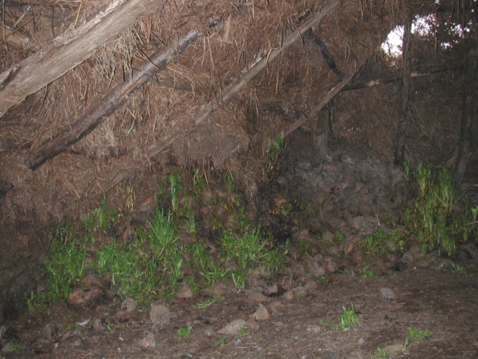 Détails de la charpente en bois de châtaignier et de la couverture en fougèreImmatriculation