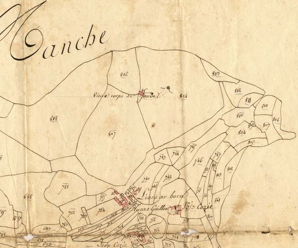 Plan de situation du corps de garde, extrait du cadastre ancien de la commune de Trébeurden, s. d., Archives départementales des Côtes-d'ArmorImmatriculation