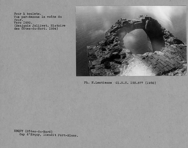 Vue du four à boulets d'Erquy : détail de la voûte du four, 1950Immatriculation