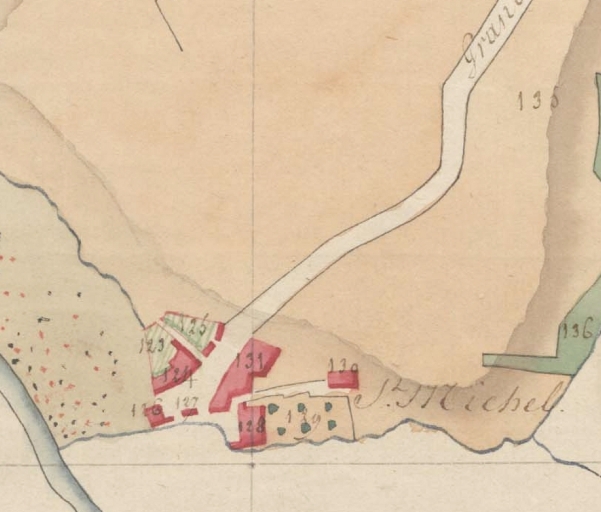 Le bourg, rive droite du ruisseau de Kerdu. Extrait des plans par masse de culture de Trédrez-Locquémeau, 1806 (AD 22). Cette partie fut détachée de Trédrez et rattachée à Saint-Michel-en-Grève en 1828.Immatriculation