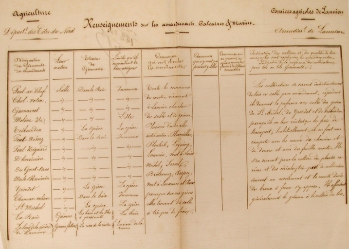 Renseignements sur les amendements calcaires marins d'après une étude de 1853-54 (AD 22)Immatriculation
