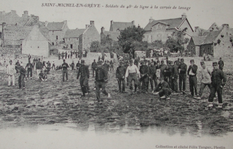 Les soldats du 48ème RI sur la plage de Saint-Michel-en-Grève au début du 20ème siècleImmatriculation