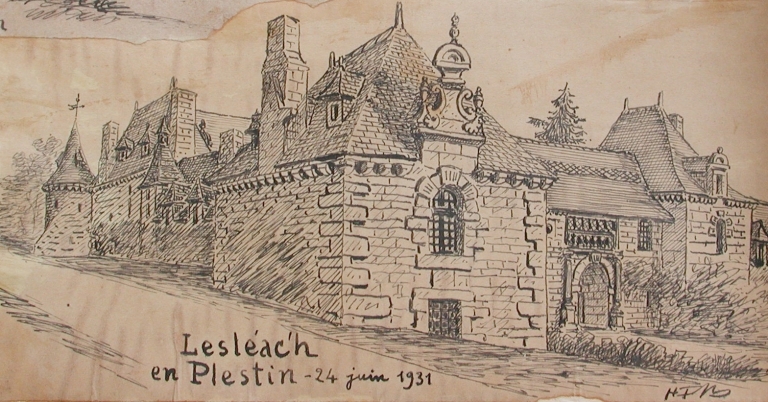 Manoir de Leslac'h. Vue générale, croquis du 24 juin 1931 (Henri Frotier de La Messelière / AD 22)Immatriculation