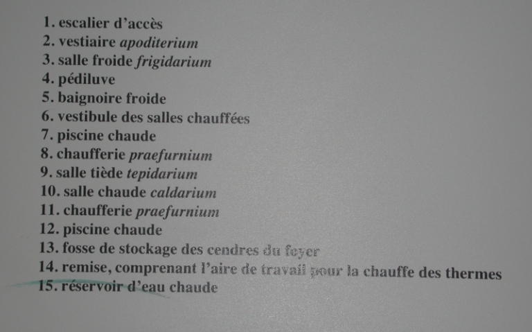 Légendes du plan détaillé des thermes du HogoloImmatriculation